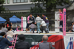 プロレス以外にも、タレントのタージン氏による総合司会、シンガーソングライターKIRA氏の国歌独唱、濱長花神楽と万々歳によるよさこい演舞、陸上自衛隊高知駐屯地による高機動車・LAVの展示など、多彩なコンテンツで「祭」を演出しました。