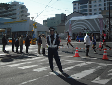 交差点2ヶ所を担当し、各10名で緊急車両指定横断交差点要員( 緊急車両通行時のランナー停止専門要員)として警備を実施しました。