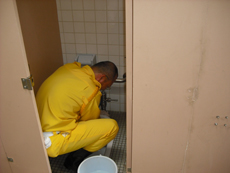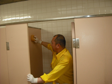 たくさんの子供や保護者の方々と一緒にトイレ掃除を行いました。