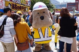 ステージでは交通安全の呼びかけや、警備業のイメージアップに努めたとうおうくん。