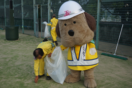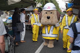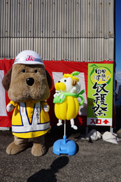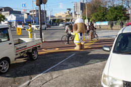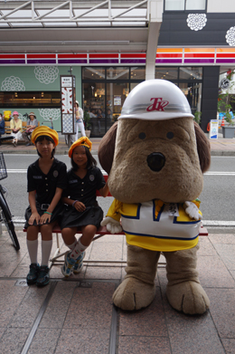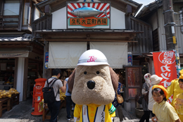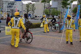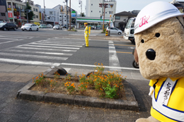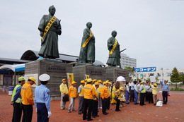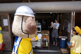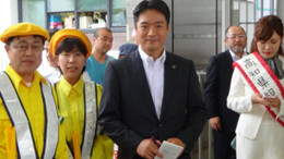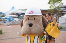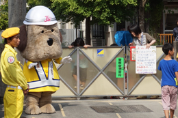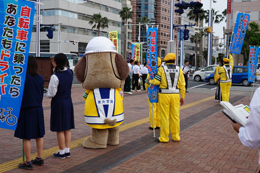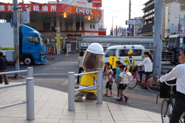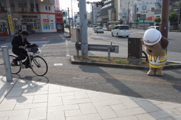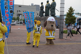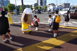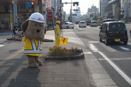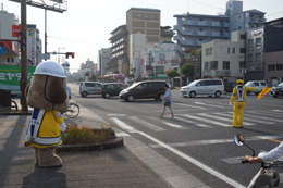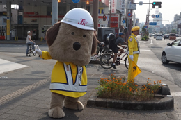とうおうくんも街頭に立って、通勤の方や観光の方に挨拶して