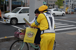 自転車の交通事故抑止を目的に作成した『龍馬の交通安全八策』チラシを配布しました。