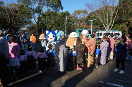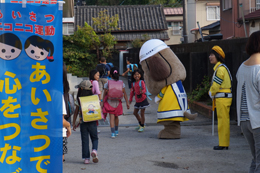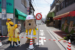 みんなと元気に挨拶しながら歩くとうおうくん。