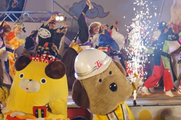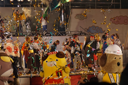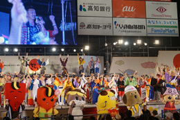 最高潮の盛り上がりのなか、高知のゆるキャラが多数出演し、
