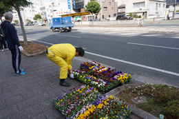 高知市上町にある坂本龍馬銅像前の花壇にて花の植え替えを行いました。