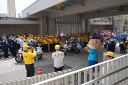 出発式には警察官や県庁の職員の方々約150人が参加され、