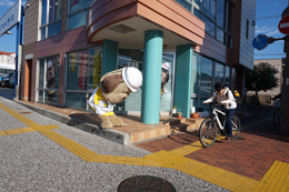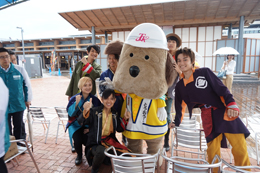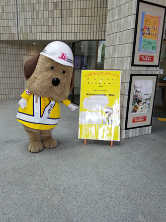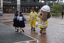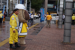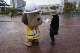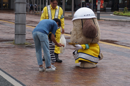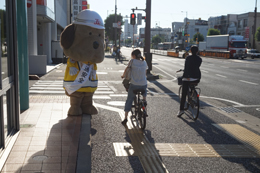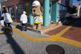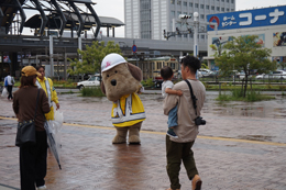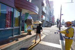 とうおうくんも街頭に立って、通勤中の方や通学中のみなさまに挨拶して