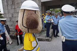 白バイ隊員らの出発式にとうおうくんも参加しました!