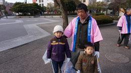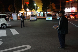 街頭に立って、通勤中の方や通学中のみなさまに挨拶して