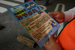 交通事故防止のチラシや記念品を配布して