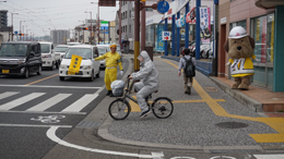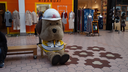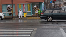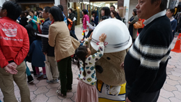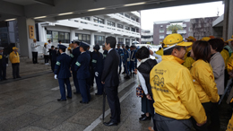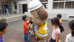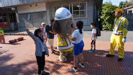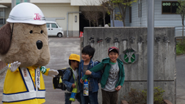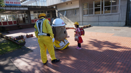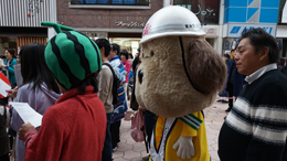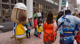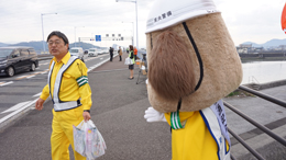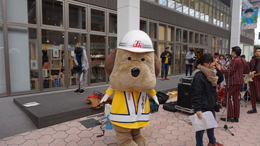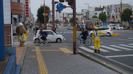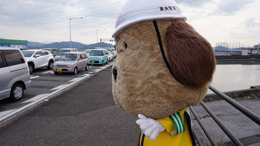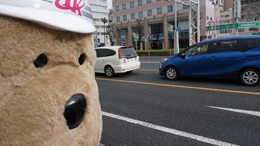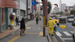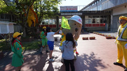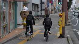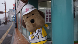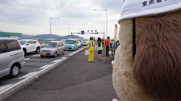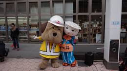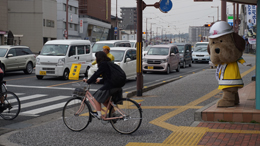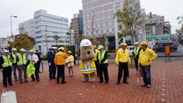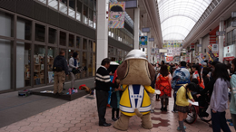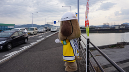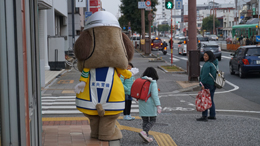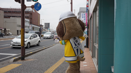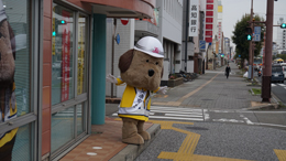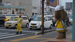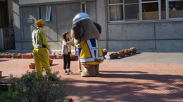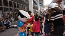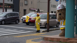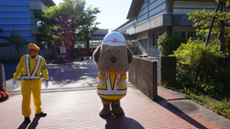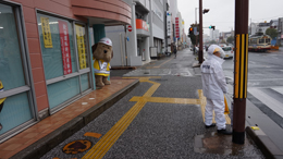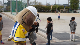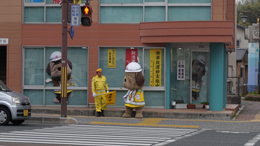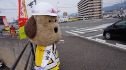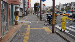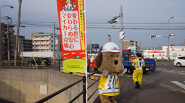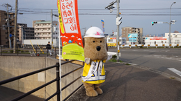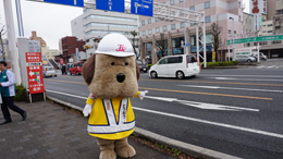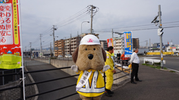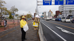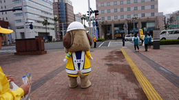 とうおうくんも街頭に立って、通勤中の方や通学中のみなさまに挨拶して