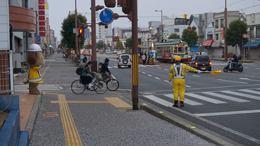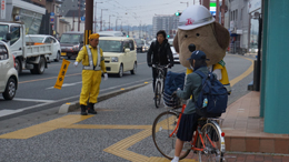 「おはようございます!」「交通安全に気をつけていってらっしゃい」