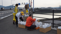 交通安全の呼びかけと安全啓発の配布物をお配りしました。