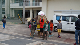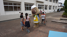 挨拶していると、たくさんの児童が集まってきてくれました。