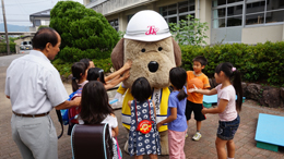 高知県交通安全の日として、南国市立岡豊小学校にて挨拶の励行を行いました。