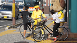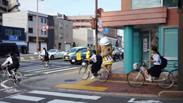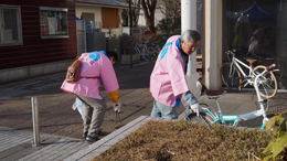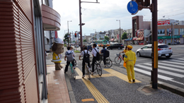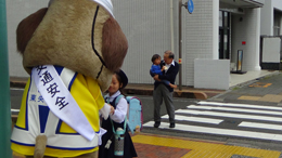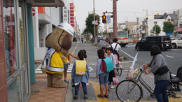 「交通安全に気をつけて、いってらっしゃい」と声掛けを行っていると
