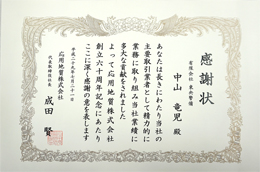 精力的に業務に取組み業績への多大な貢献を称えていただき