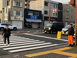通勤通学で通り過ぎる皆様も、寒そうにしながらも安全に通行されていました。