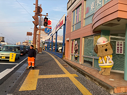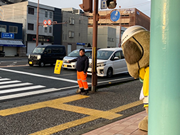 しばらくお休みをしておりましたが、往来されるみなさまから街頭に立つとうおうくんに