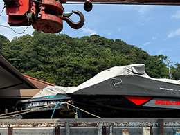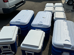 水や非常食、燃料等に加え、災害速報用のモニター、冠水移動用の水上バイクなど、多岐に渡る災害対策強化を行い、同時に無線を使った緊急訓練も行いました。