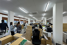 事務と社員の総出で引越作業を行い、机やPCなど協力して運び込みました。
