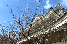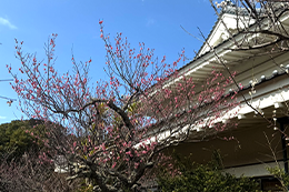 春がが訪れ、社屋の中庭では紅白の梅の花が満開となり、鈴生りに実った金柑とともに美しい風景が広がっています。